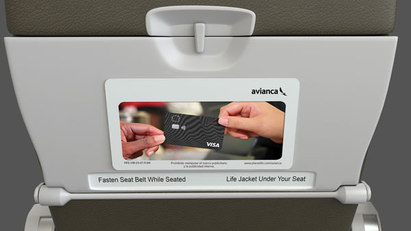 Destaca tu marca y llega a los pasajeros a través de materiales impresos a bordo, como insertos en los respaldos de sus asientos, que captan su atención durante todo el viaje.