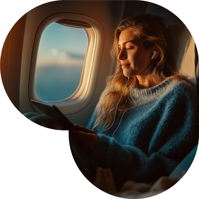 Publicidad digital en formatos como pre-rolls y banners dentro de contenidos de entretenimiento accesibles desde dispositivos móviles: series, películas, juegos, revistas, menú a bordo y más. Además, se desarrollan micro-sitios personalizados que realzan la presencia de la marca a lo largo de la experiencia del pasajero.